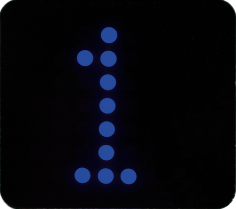 LC100-M5 is a dot matrix display, dimensions 46x39 mm, resolution 10x7, available in 3 colours (red, blue, white) and with 2 connector types (vertical, right angle).